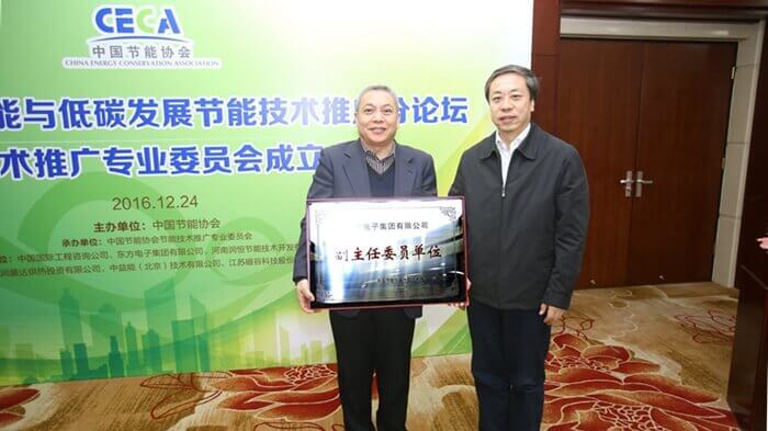 12月24日,公司应邀参加由中国节能协会主办的节能技术推广专业委员会成立大会暨2016中国节能与低碳发展论坛节能技术推广分论坛,并当选为副主任委员单位。来自国家发改委、国家机关事务管理局、中国节能协会、国家节能中心等单位的领导和嘉宾及会员单位代表120余人参加了本次会议。