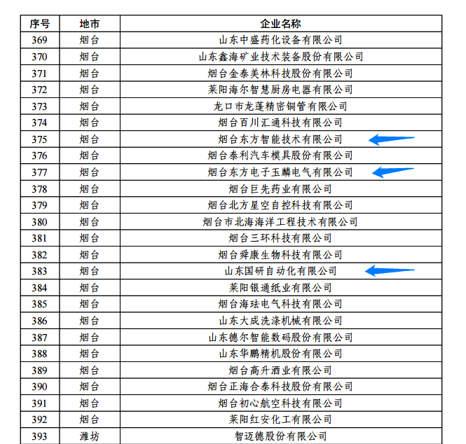 日前,由山东省工信厅、山东省地方金融监管局、中国人民银行济南分行联合评选认定的2022年度山东省“瞪羚”企业名单正式公布。我集团公司的烟台深圳金麦穗技术科技有限公司玉麟电气有限公司、山东国研自动化有限公司、烟台东方智能技术有限公司等三家权属企业入选,认定日期为即日起至2025年12月31日。